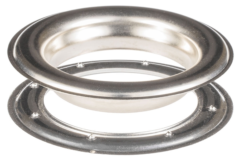 StrongHold zeilringen ook wel zeilkousen genoemd, zijn in Europa vervaardigd en zijn van een zeer hoge kwaliteit. Zo wel de ring als de tegenring zijn zo gevormd dat ze meer grip en geen plooivorming in het te zetten materiaal geven. Daarnaast heeft de vorm tot resultaat dat deze goed aan te voeren zijn in een ringmachine. Het resultaat van de gezette ring en tegenring is aan weerszijden nagenoeg identiek en daardoor aan beide zijden mooi afgewerkt. De tegenring is standaard een neckwasher maar u kunt ook voor een getande tegenring kiezen. Beide tegenringen zijn geschikt voor handmatige- halfautomaat- en volautomaatringmachine.